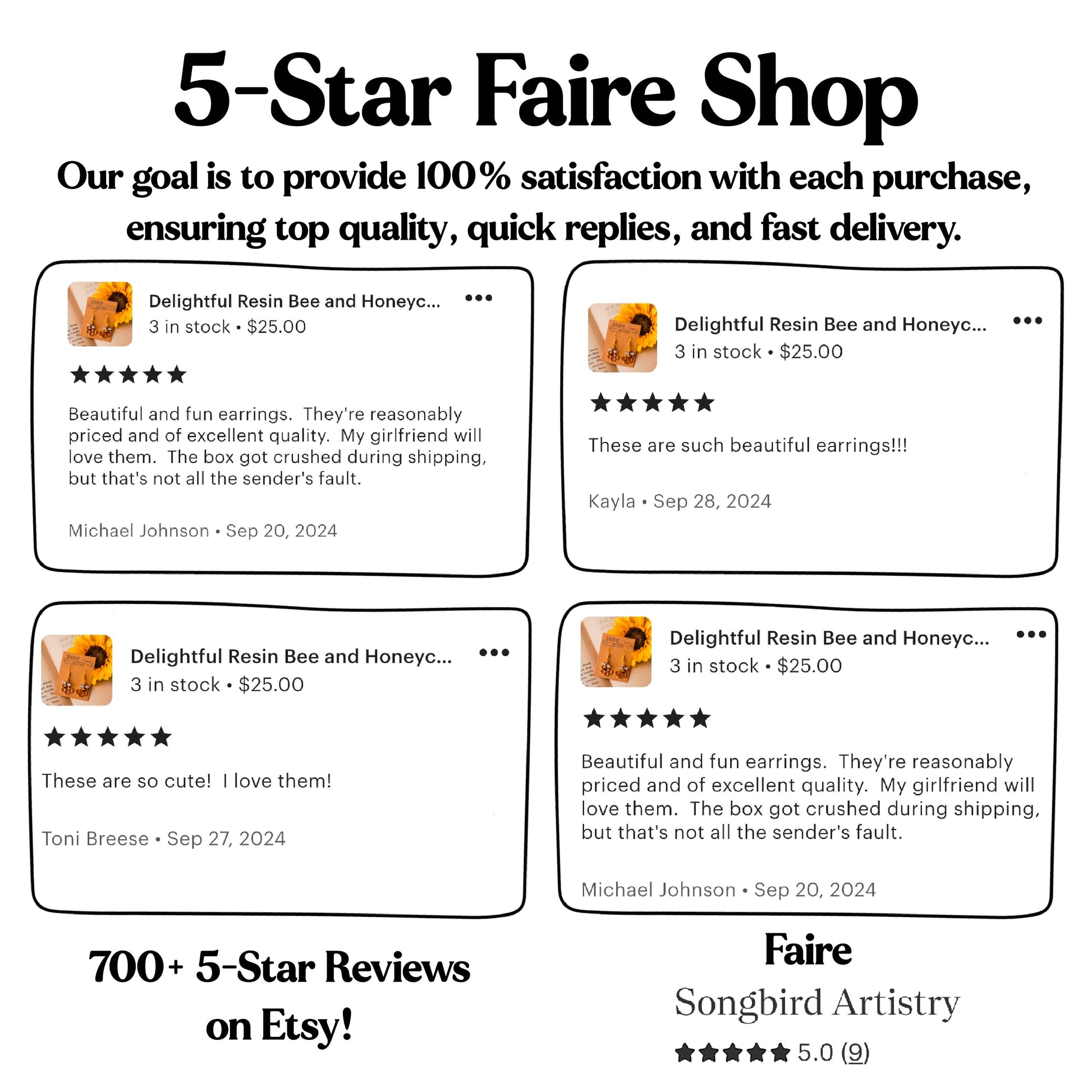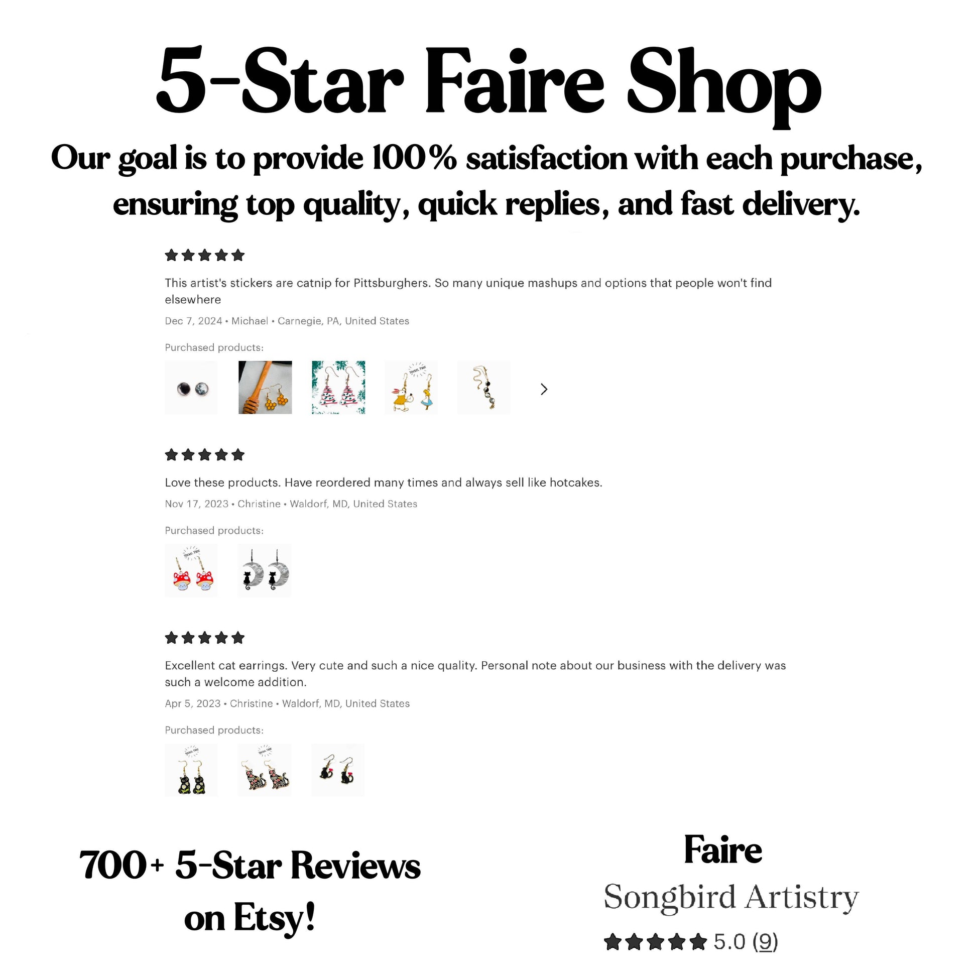 All Earrings come on quality placards, printed with product information. (With room to punch holes, for hanging.)