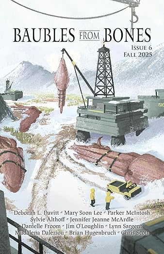 Scapegoats, old age, and alien gossip - through sharp-toothed friendships and blighted colonization, contemplate which common threads tie our societies together, leave us bound, and knot us into something new in this issue of Baubles From Bones.