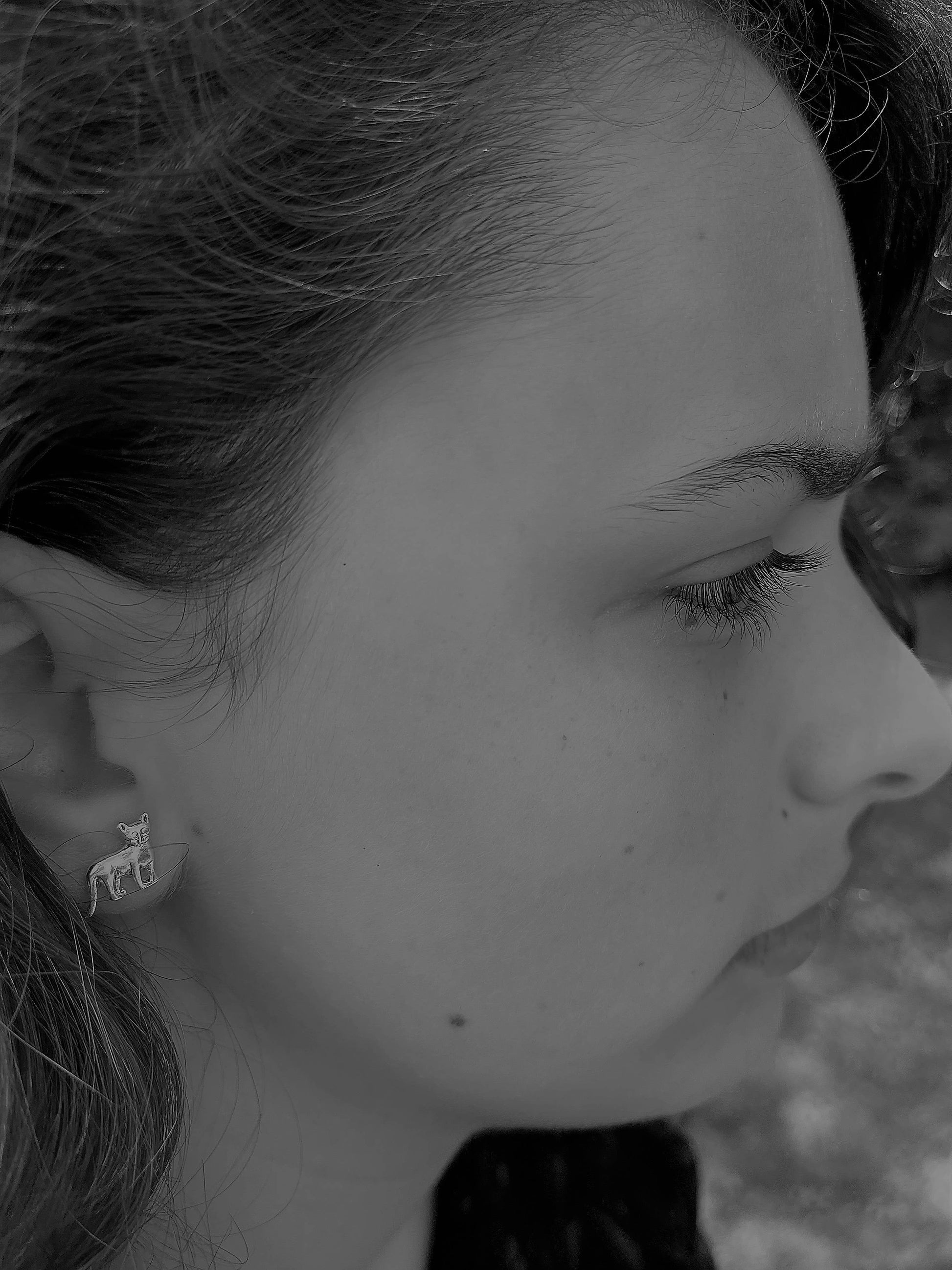 14k gold over Sterling Silver Cat earrings mounted on our exclusive foldover Natural History cards. Educational information about cats on back of card. Actual width 1/2'' from ear to tail.