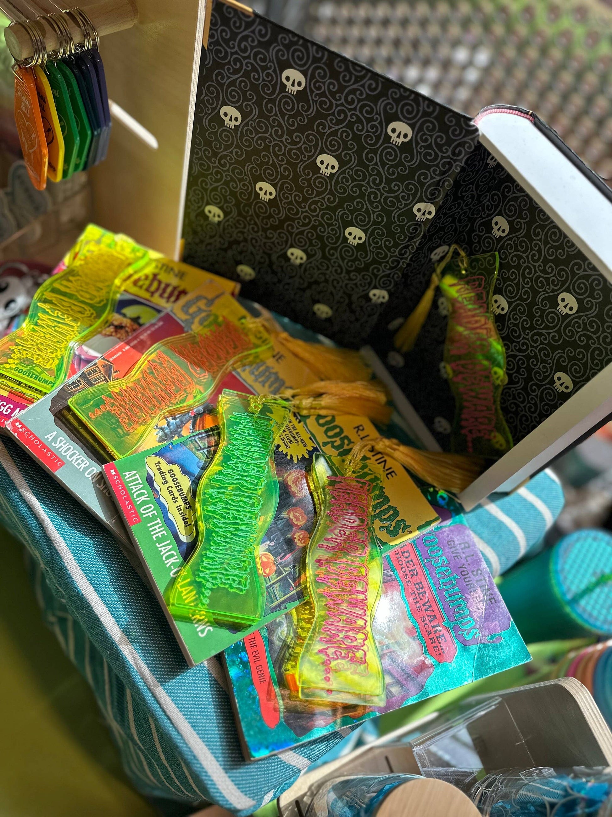 Introducing our captivating neon acrylic bookmarks inspired by the thrill and excitement of Goosebumps! Elevate your reading experience with these eye-catching companions that will send shivers down your spine.