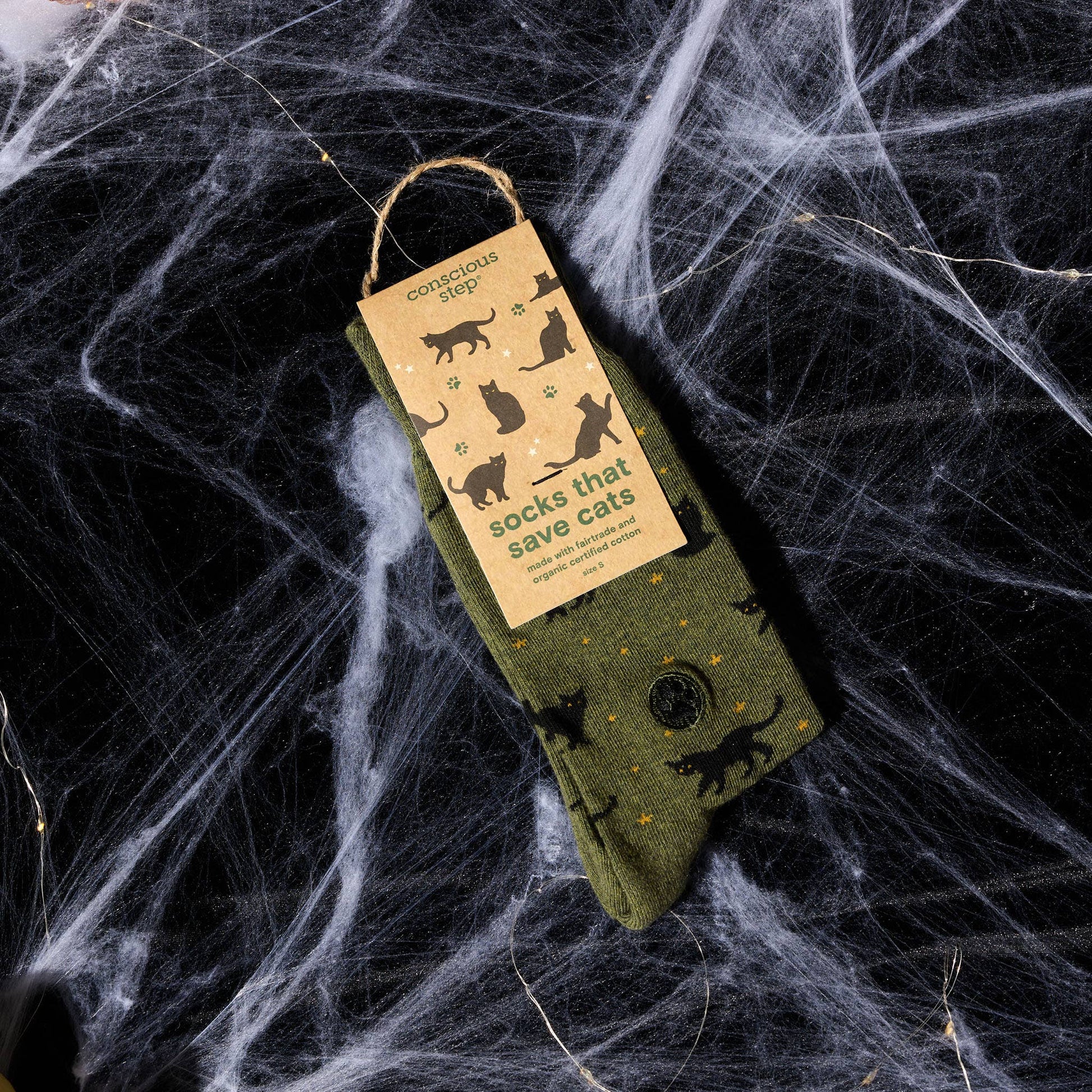 These black cat socks are out of this world… literally! These wickedly cute green socks feature spellbinding stars and mystical felines that are ready to stir up a cauldron’s worth of mischief.