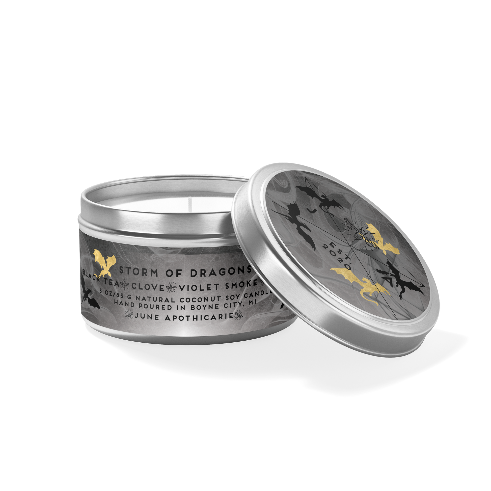 Enter a new chapter of the Fourth Wing series with this "Storm of Dragons" fragrance. This spicy scent mixes sultry black tea with warm fig, fresh nutmeg and a touch of smoked violet to create a mysterious and warm scent. Brave the dark and burn this candle while reading about our favorite Dragon riders Violet Sorrengail and Xaden Riorson as they brave the dark!