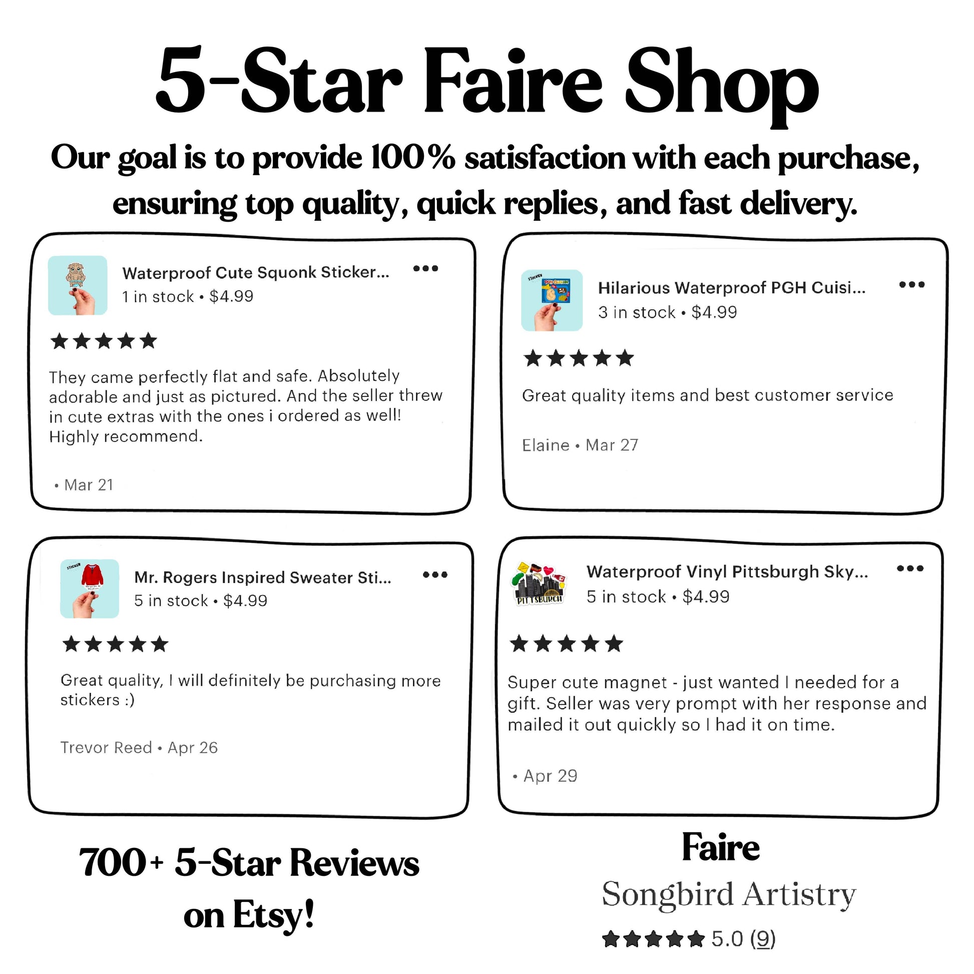 All stickers are now sent without wasteful packaging and they are labeled with our information. If you would like your stickers to include tabs for easy hanging, please let us know.